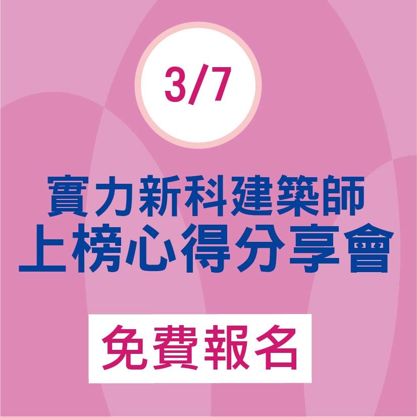 想了解新科建築師是如何準備考試並順利上榜的嗎? 3/07 (六) 下午 14:0 …
