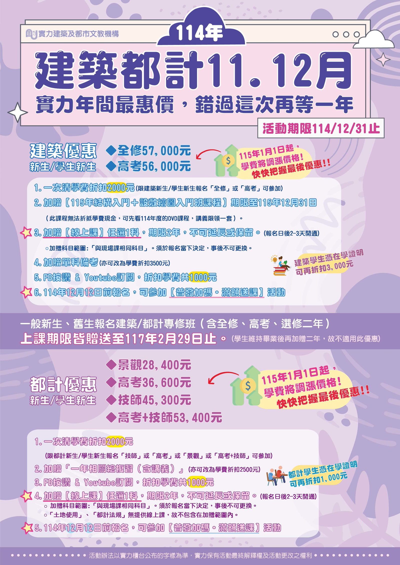 建築都計11、12月.實力年間最優惠,錯過這次再等一年
